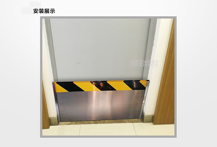 不銹鋼擋鼠板安裝簡單,先將膨脹螺釘(內(nèi)膨脹也叫漲塞)穿入卡槽上的安裝孔,再將兩側(cè)的卡槽沿門框?qū)⑴蛎浡葆斊叫泄潭ǖ介T框兩邊墻體上,卡槽安裝成功。使用時把擋鼠板順卡槽的內(nèi)徑滑入卡槽之中。不用時將擋鼠板取出,固定在墻體上的卡槽不影響門的正常開關(guān),不用取下。